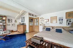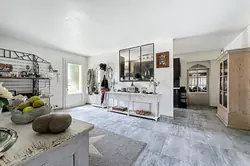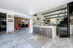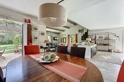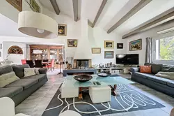 - Un vaste séjour avec coin salle à manger donnant accès à la terrasse et grand salon avec cheminée ouverte