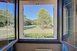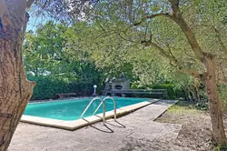 Côté extérieur, un jardin plat de plus de 2500m² arboré d'une vingtaine d'oliviers, de mimosas et autres essences méditerranéennes, sur lequel sont implantés la piscine et un cabanon.