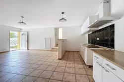 Spacieuse pièce de vie avec cuisine aménagée communicante avec le garage de 23 m².