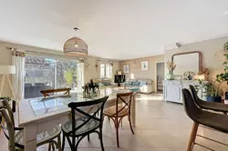Morières les Avignon, a 10-minute walk from the village center, located at the end of a quiet cul-de-sac in a small residential subdivision, this single-story detached villa was built in 2016 on a 390m² plot. Offering over 90m² of living space, it includes an entrance with a closet, a living area consisting of a bright living room and an open, equipped kitchen, 3 bedrooms with built-in wardrobes, a bathroom with a walk-in shower and bathtub, a separate toilet, and a 22m² garage attached to the kitchen. Outside, the house features a terrace opening onto the living room and a pretty, fully enclosed wooded garden. House compliant with RT-2012 standards. Reversible air conditioning, thermodynamic water heater, crawl space... No renovation work needed.