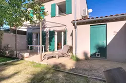 Exclusive. Charming 2011 villa with garden and garage just outside the village and almost in the countryside. Air-conditioned living room with open kitchen and two French doors opening onto the terrace and garden, toilet, and access to the 16 m² garage. Upstairs: Landing with closet, two bedrooms with built-in wardrobes, bathroom with large shower and WC. Outside: Lovely terrace with a pleasant south-facing garden, small north-facing garden, and private parking space. Nice neighborhood within a small development of 16 houses. Simplified co-ownership with no fees (only €10 every two years for the Carpentras canal tax).